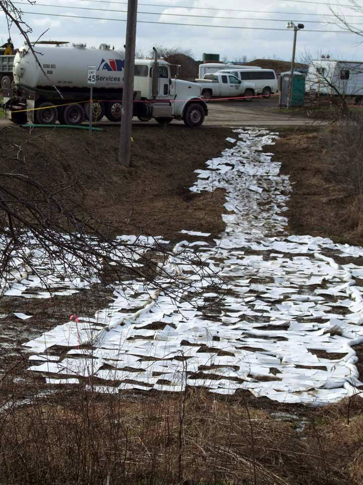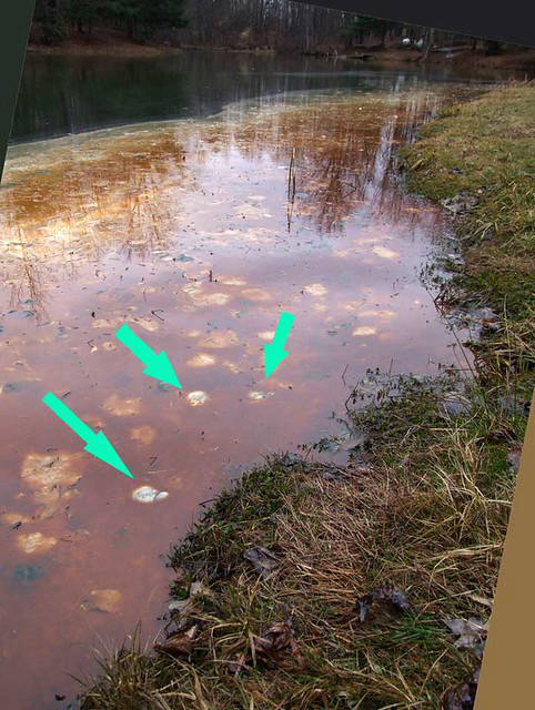 People living near the KDA injection well in Vienna noticed a foul smell in the air.  They called the Ohio EPA.  They were told it was ice on the pond causing low oxygen in the pond and things do die.  Ice on the pond hid the trouble from view.  Then the ice melted.  Ohio EPA and ODNR were both notified.  Told the ice story again.  1 week later, still no one went out to check this out.